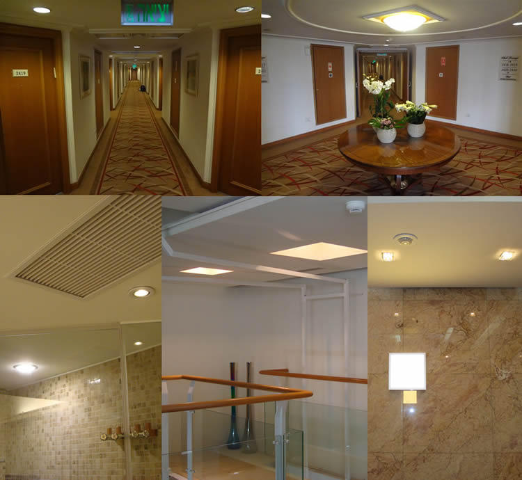 多くの間接照明の光源には、ハロゲン・水銀・HIDなど大消費電力タイプの光源が使用されています。LED化による省エネ効果、自然に優しい照明機器導入は、ホテルの経営方針、姿勢の現われとして節約効果以上のメリットをもたらします。 |
